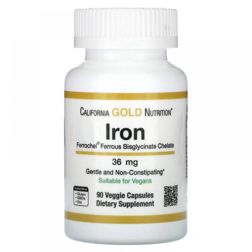 California Gold Nutrition, Ferrochel, железо (бисглицинат), 36 мг, 90 растительных капсул