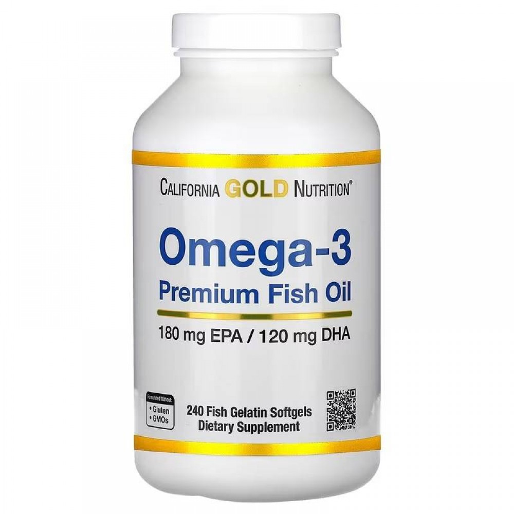 California Gold Nutrition, Omega-3 Premium Fish Oil, 240 Fish Gelatin Softgels